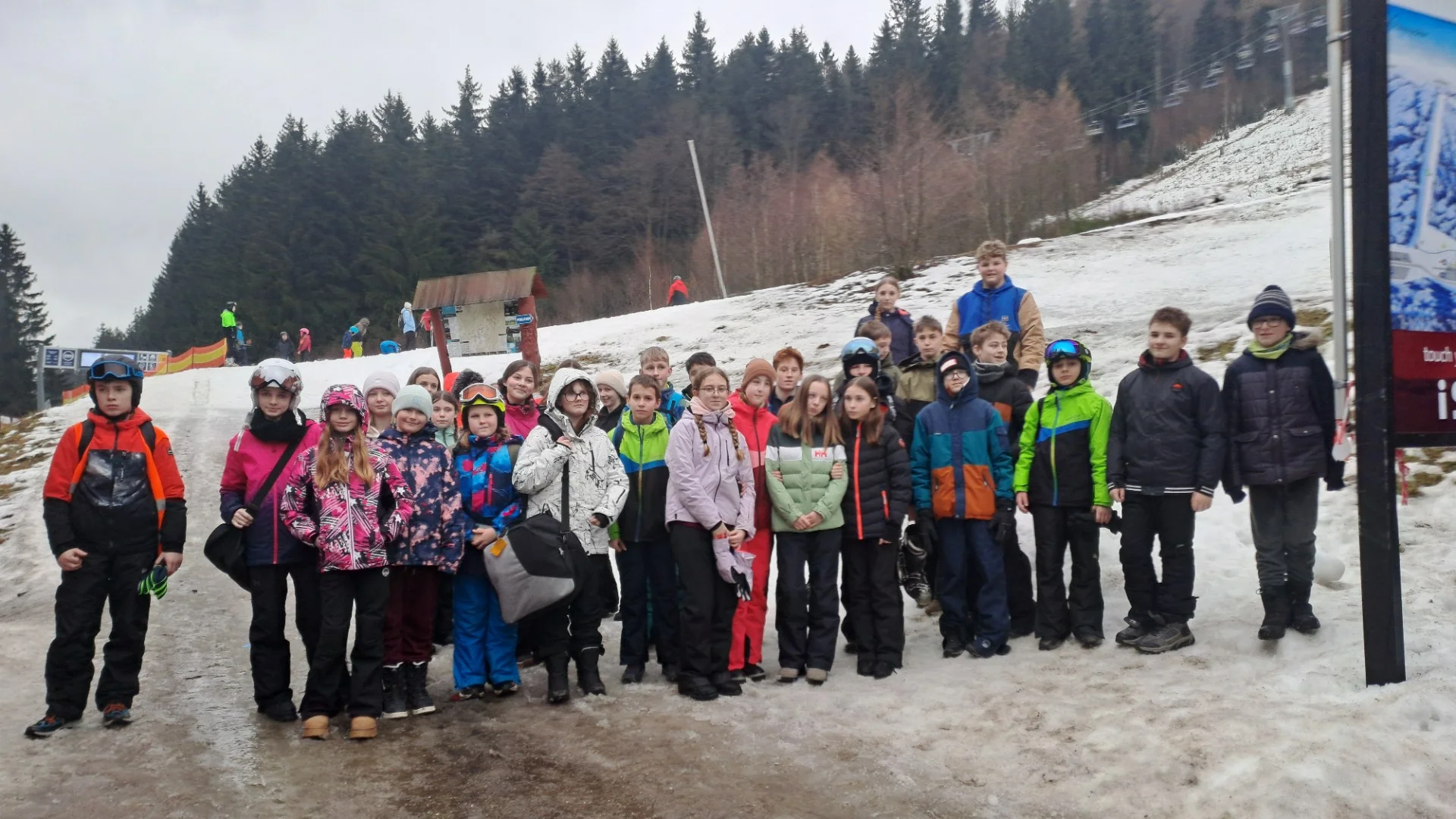 Od neděle 8. února do pátku 13. února se 33 žáků šestých a sedmých tříd zúčastnilo lyžařského kurzu v Jeseníkách v Loučné nad Desnou. Lyžovali jsme ve skiareálu Přemyslov, kde byly vynikající podmínky pro lyžařské kurzy, jak pro zdatné lyžaře, tak pro začátečníky. Fyzickou připravenost žáci prokazovali nejen při trénování oblouků a sjíždění svahu, ale také při přesunu z místa ubytování k lyžařskému středisku. Výcvik byl pro žáky velkým přínosem, protože někteří byli na lyžích poprvé. Jejich radost na sedačkové lanovce a následné sjíždění se ze svahu dolů bylo obrovské. Společně trávené večery bez mobilů posílily vzájemné kamarádství mezi ročníky. Lyžařský kurz hodnotíme jedničkou.