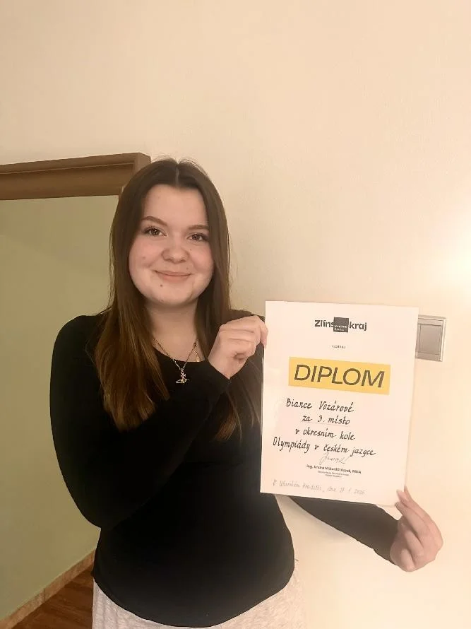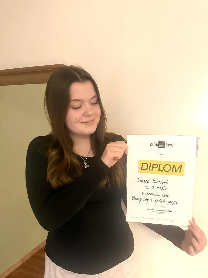 Bianka Vozárová, žákyně IX. třídy, obsadila 3. místo v okresním kole Olympiády v jazyce českém a postupuje do krajského kola.